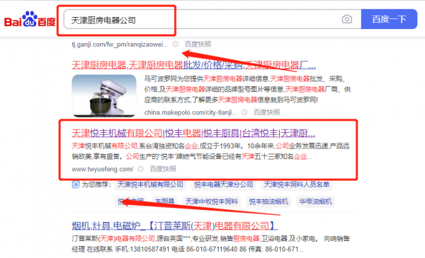我們公司與天津悅*機(jī)械有限公司合作中,對這個(gè)公司所經(jīng)營的廚房電器這個(gè)行業(yè)提供了快速排名,與該公司的合作,更多的客戶讓我們公司為其提供SEO推廣,通過每一次合作,我們公司不斷完善自己,同時(shí)希望合作伙伴在經(jīng)營的路上越來越好。