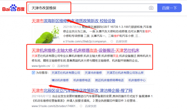 天津藝*機床有限公司選用我司企業改裝維保的網站優化產品,其SEO關鍵詞有改裝維保。通過百度SEO優化排名技術幫助企業網站挖掘客戶潛在需求,提升關鍵詞排名和客戶咨詢量。通過搜索引擎優化為企業帶來持續、低成本的自然流量,提升企業銷售額,使企業由被動營銷網絡推廣變為主動營銷網絡推廣。天津藝*機床有限公司成立于2008年,是經天津市市場監督管理局審核的有資質的公司,其統一社會信用代碼:9112011367**61182F。公司地址:天津市北辰區大張莊鎮九園公路科技園666號。