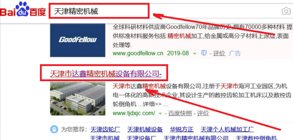 我們公司與天津市達鑫精密機械設備有限公司合作中,對這個公司所經(jīng)營的精密機械這個行業(yè)提供了百度快照排名,與該公司的合作,更多的客戶讓我們公司為其提供百度快照排名,通過每一次合作,我們公司不斷完善自己,同時希望合作伙伴在經(jīng)營的路上越來越好。