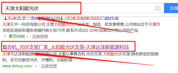 我們公司與天津市達澤新能源科技有限公司合作中,對這個公司所經(jīng)營的太陽能光伏這個行業(yè)提供了快速排名,同時讓我們積累到更多的經(jīng)驗,與天津市達澤新能源科技有限公司建立了友好的合作伙伴的關系,也提高了海洋網(wǎng)絡在同行業(yè)的知名度,提高了太陽能光伏在同行業(yè)的知名度,發(fā)展越來越好。
