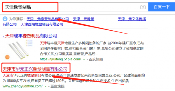 我們公司與天津市華元正興橡塑制品有限公司合作中,對(duì)這個(gè)公司所經(jīng)營(yíng)的橡塑制品這個(gè)行業(yè)提供了百度快照排名,與該公司的合作,更多的客戶(hù)讓我們公司為其提供百度快照排名,通過(guò)每一次合作,我們公司不斷完善自己,同時(shí)希望合作伙伴在經(jīng)營(yíng)的路上越來(lái)越好。