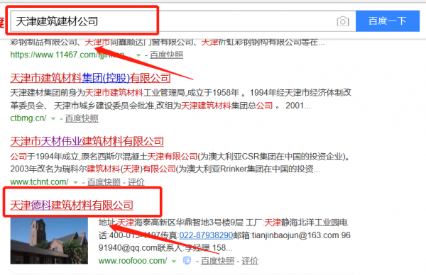 天津德科建筑材料有限公司與本司簽約百度快照排名協議