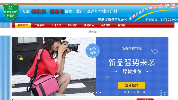 蘇*羅箱包有限公司成立于2005年,坐落于中國北方最大的箱包生產和貿易集散地—白溝。2010年注冊自主品牌“蘇迪羅” 。 公司注冊資金50萬元,占地面積5000平方米,有銷售員工20余人、生產員工140余人日產箱包3000余個。是集設計、開發、生產、銷售于一體的箱包企業。公司生產“蘇迪羅”牌相機包、攝影包、電腦包等各類箱包產品。我公司擁有一批穩定高素質的員工隊伍和一流的技術、一流的設備。