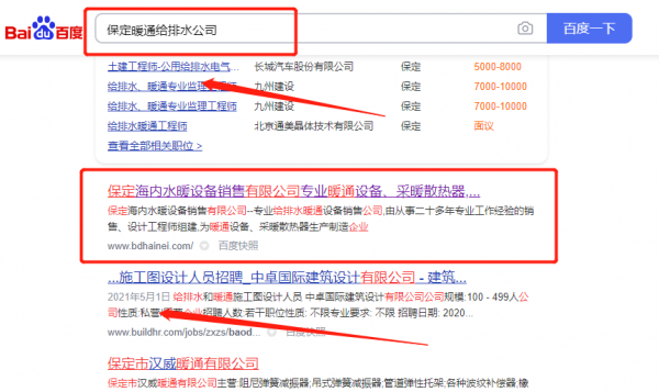 保定海*水暖設(shè)備銷售有限公司選用我司企業(yè)暖通給排水的網(wǎng)站優(yōu)化產(chǎn)品,其SEO關(guān)鍵詞有暖通給排水。通過反饋站點(diǎn)的客戶體驗(yàn)給搜索引擎,提升網(wǎng)站的關(guān)注度和友好度,從而達(dá)到關(guān)鍵字排名迅速提升的效果。多年上萬關(guān)鍵詞排名解決方案,且支持技術(shù)、售后有保障。保定海*水暖設(shè)備銷售有限公司成立于2009年,是經(jīng)保定市市場監(jiān)督管理局審核的有資質(zhì)的公司,其統(tǒng)一社會信用代碼:911306026**678165W。公司地址:河北省保定市新市區(qū)大車村268號。