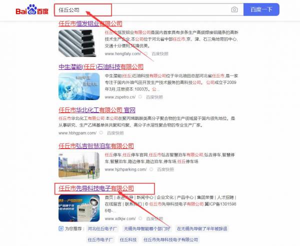 任丘市先*科技電子有限公司網站優化最快上詞效果展示