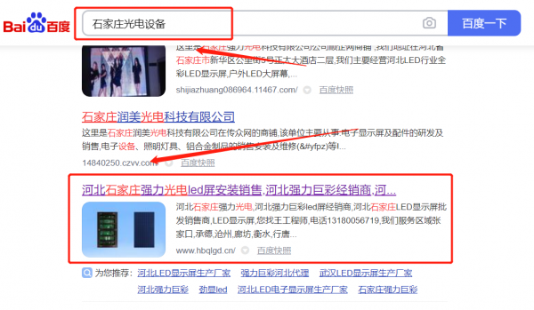 石家莊強*光電科技有限公司選用我司企業光電設備的網站優化產品,其SEO關鍵詞有光電設備。關鍵詞不限點擊次數,大量搜索流量直達官網;PC + 手機端搜索首頁自然排名,365天持效穩定收錄。石家莊強*光電科技有限公司成立于2009年,是經石家莊市市場監督管理局審核的有資質的公司,其統一社會信用代碼:911301026**345017P。公司地址:河北省石家莊市長安區勝利北街185號。