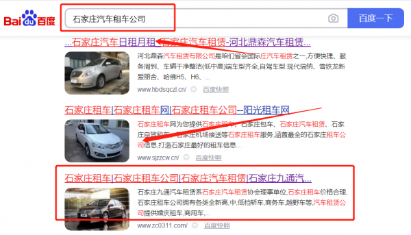 石家莊九*汽車租賃有限公司百度關(guān)鍵詞排名案例欣賞