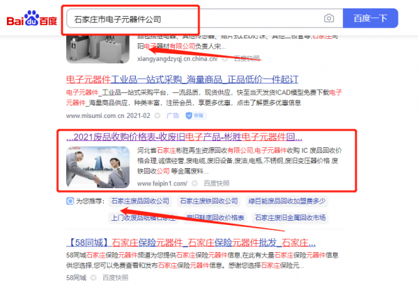 我們公司與石家莊*勝廢品回收有限公司合作中,對這個公司所經營的電子元器件這個行業提供了優化排名,與該公司的合作,更多的客戶讓我們公司為其提供關鍵詞搜索排名,通過每一次合作,我們公司不斷完善自己,同時希望合作伙伴在經營的路上越來越好。