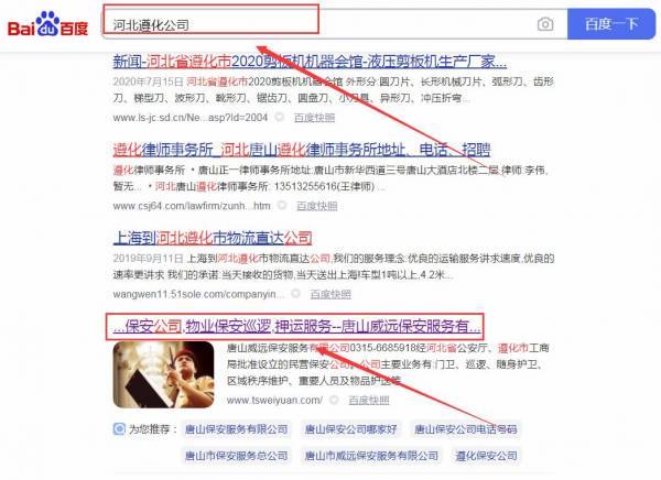 唐山市威*保安服務有限公司網站優化排名效果展示