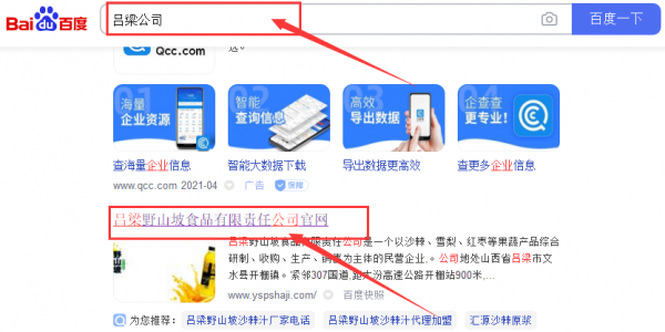 呂梁野山*食品有限責任公司百度關鍵詞排名效果展示