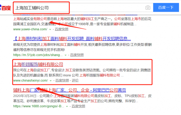 上海昕翊服飾輔料有限公司選用我司企業(yè)加工輔料的網(wǎng)站優(yōu)化產(chǎn)品,其SEO關(guān)鍵詞有加工輔料。按天計費,最快7天上詞,不到首頁不扣費。關(guān)鍵詞質(zhì)量保證,白帽SEO符合百度算法,360、搜狗、移動端等排名效果免費贈送。上海昕翊服飾輔料有限公司成立于2010年,是經(jīng)上海市市場監(jiān)督管理局審核的有資質(zhì)的公司,其統(tǒng)一社會信用代碼:91310114552940244U。公司地址:上海市嘉定工業(yè)區(qū)葉城路1630號10幢2042室。