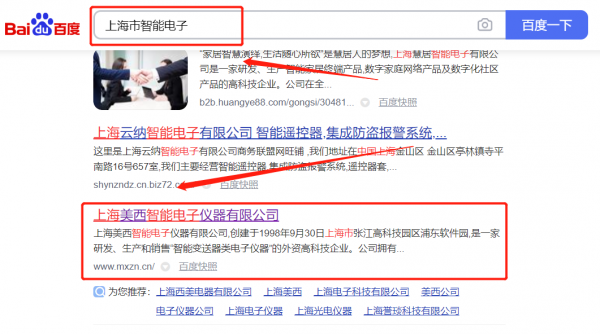 上海美*智能電子儀器有限公司SEO保證在首頁效果