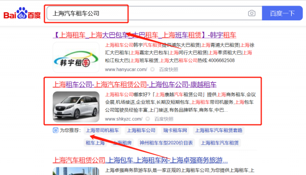 上海*越汽車租賃有限公司百度排名保證在首頁效果