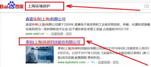 我們公司與泰鉑(上海)環保科技股份有限公司合作中,對這個公司所經營的環境保護這個行業提供了SEO推廣,與該公司的合作,更多的客戶讓我們公司為其提供SEO推廣,通過每一次合作,我們公司不斷完善自己,同時希望合作伙伴在經營的路上越來越好。