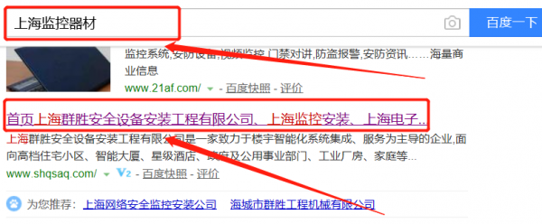 上海啟豐電子科技有限公司選用我司企業(yè)監(jiān)控器材的網(wǎng)站優(yōu)化產(chǎn)品,其SEO關(guān)鍵詞有監(jiān)控器材。提供清晰的數(shù)據(jù)分析報(bào)表,全程專人進(jìn)行跟蹤,隨時(shí)通過seo后臺工具查詢關(guān)鍵詞排名,及時(shí)修改、優(yōu)化執(zhí)行策略。上海群勝安全設(shè)備安裝工程有限公司成立于2007年,是經(jīng)上海市市場監(jiān)督管理局審核的有資質(zhì)的公司,其統(tǒng)一社會信用代碼:913101136693951475。公司地址:上海市寶山區(qū)牡丹江路1508號3302-J室。