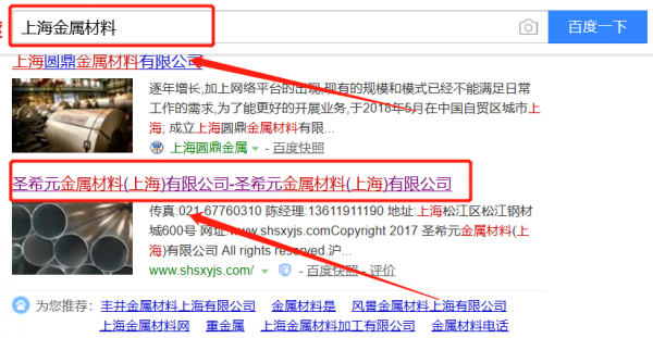 圣希元金屬材料(上海)有限公司選用我司企業(yè)金屬材料的網(wǎng)站優(yōu)化產(chǎn)品,其SEO關(guān)鍵詞有金屬材料。快速優(yōu)化系統(tǒng)火速推采用智能數(shù)據(jù)系統(tǒng),效果一目了然,包括關(guān)鍵詞排名,消費(fèi),余額等,并通過大量的數(shù)據(jù)分析優(yōu)化廣告效果。圣希元金屬材料(上海)有限公司成立于2010年,是經(jīng)上海市市場(chǎng)監(jiān)督管理局審核的有資質(zhì)的公司,其統(tǒng)一社會(huì)信用代碼:9131011756312877X2。公司地址:上海市松江區(qū)永豐街道玉樹路269號(hào)5號(hào)樓33105室。