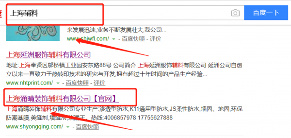 上海涌晴裝飾輔料有限公司選用我司企業(yè)輔料的網(wǎng)站優(yōu)化產(chǎn)品,其SEO關(guān)鍵詞有輔料。搶占百度、360搜索、搜狗等搜索引擎首頁(yè)自然排名(PC端 + 手機(jī)端),高客流量導(dǎo)入,SEO推廣效果更突出。上海涌晴裝飾輔料有限公司成立于2007年,是經(jīng)上海市市場(chǎng)監(jiān)督管理局審核的有資質(zhì)的公司,其統(tǒng)一社會(huì)信用代碼:91310116660789692A。公司地址:上海市普陀區(qū)祁連山南路。