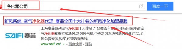 我們公司與上海賽菲環(huán)境科技股份有限公司合作中,對這個(gè)公司所經(jīng)營的凈化器這個(gè)行業(yè)的百度快照排名,積累了豐富的經(jīng)驗(yàn);同時(shí)在該行業(yè)的百度快照排名,等多元化的領(lǐng)域中也有很多的成功的案例;但愿通過我們的合作,能夠幫助到合作伙伴在同行業(yè)中遙遙領(lǐng)先。
