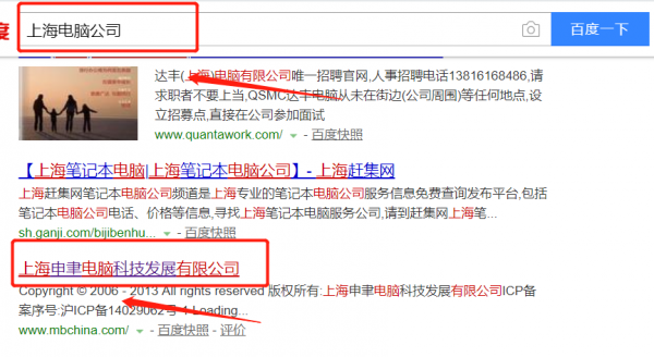 我們公司與上海申聿電腦科技發展有限公司合作中,對這個公司所經營的電腦這個行業提供了快速排名,與該公司的合作,更多的客戶讓我們公司為其提供快速排名,通過每一次合作,我們公司不斷完善自己,同時希望合作伙伴在經營的路上越來越好。