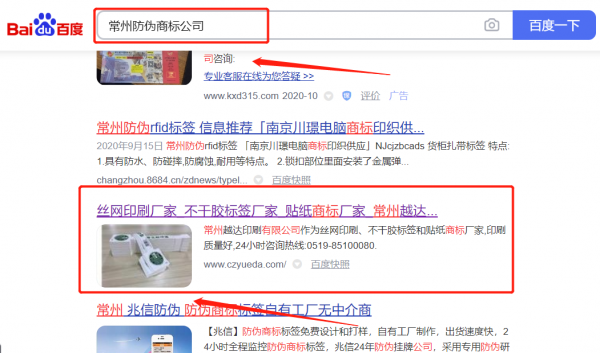 常州*達印刷有限公司選用我司企業防偽商標的網站優化產品,其SEO關鍵詞有防偽商標。從站內到站外,人工智能全新搜索優化技術,最快7天關鍵詞排名上首頁,利用互聯網營銷手法,多平臺,多樣化進行品牌內容鋪設,營造企業正面形象。常州*達印刷有限公司成立于2016年,是經常州市市場監督管理局審核的有資質的公司,其統一社會信用代碼:91320411M**N4BPQ3P。公司地址:江蘇省常州市新北區黃河西路197號。