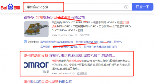 常州市信*達創自動化設備有限公司百度關鍵詞排名保證在首頁效果