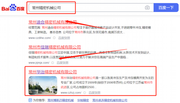 常州*治精密機械有限公司選用我司企業精密機械的網站優化產品,其SEO關鍵詞有精密機械。從站內到站外,人工智能全新搜索優化技術,最快7天關鍵詞排名上首頁,利用互聯網營銷手法,多平臺,多樣化進行品牌內容鋪設,營造企業正面形象。常州*治精密機械有限公司成立于2009年,是經常州市市場監督管理局審核的有資質的公司,其統一社會信用代碼:913204126**7955404。公司地址:江蘇省常州市武進國家高新技術產業開發區武進大道西路86號8B。