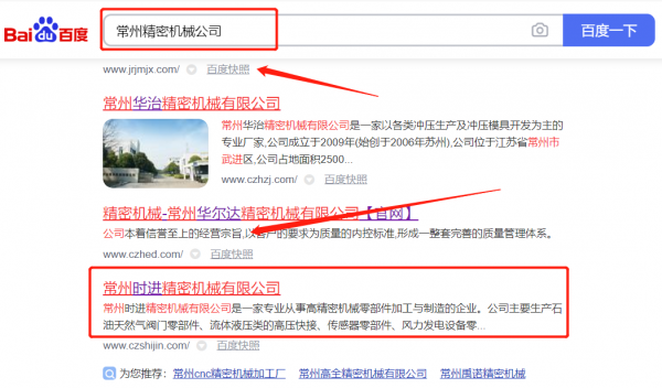 常州時(shí)*精密機(jī)械有限公司新站排名排名效果展示