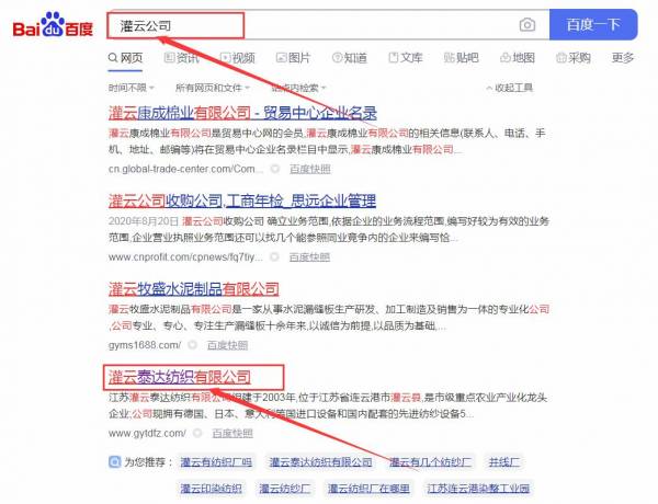 灌云泰*紡織有限公司百度關鍵詞排名保證在首頁效果