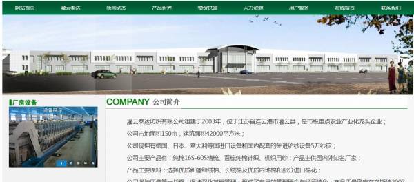 灌云泰*紡織有限公司選用我司企業紗線行業的網站優化產品,其SEO關鍵詞有 灌云泰*紡織有限公司,純棉16s-60s精梳、普梳針織用紗。其特點是用很合適的展示方式、展示效果、站點框架,把客戶及其用戶很關心的問題突出表現;并以簡潔明朗的設計風格,清晰展現公司水平實力,確保一秒抓住目標用戶眼球,給用戶留下良好的第一印象。灌云泰*紡織有限公司成立于2003年,是經灌云市市場監督管理局審核的有資質的公司,其統一社會信用代碼:9132070075**43288Y。公司地址:江蘇省灌云縣伊山鎮振興南路。
