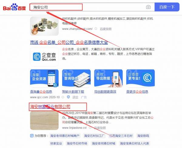 海安*家石業有限公司選用我司企業石材護理行業的網站優化產品,其SEO關鍵詞有 南通天然大理石,林家石業,石材廠家,海安*家石業有限公司。其特點是用很合適的展示方式、展示效果、站點框架,把客戶及其用戶很關心的問題突出表現;并以簡潔明朗的設計風格,清晰展現公司水平實力,確保一秒抓住目標用戶眼球,給用戶留下良好的第一印象。海安*家石業有限公司成立于2013年,是經海安市市場監督管理局審核的有資質的公司,其統一社會信用代碼:9132062108150**92N。公司地址:江蘇省南通市海安老壩港濱海新區(海安國際石材城內)。