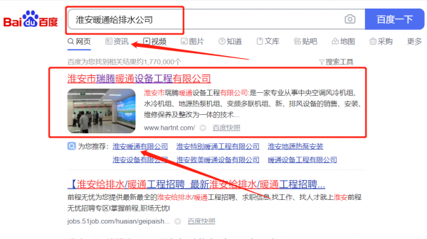 淮安市*騰暖通設備工程有限公司百度關鍵詞排名整合營銷推廣