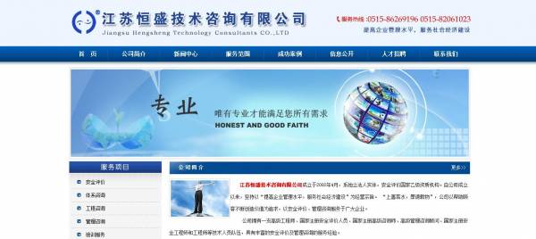江蘇恒盛技術咨詢有限公司選用我司企業技術咨詢行業的網站優化產品,其SEO關鍵詞有 江蘇恒盛技術咨詢有限公司。其特點是用很合適的展示方式、展示效果、站點框架,把客戶及其用戶很關心的問題突出表現;并以簡潔明朗的設計風格,清晰展現公司水平實力,確保一秒抓住目標用戶眼球,給用戶留下良好的第一印象。江蘇恒盛技術咨詢有限公司成立于2002年,是經建湖市市場監督管理局審核的有資質的公司,其統一社會信用代碼:913209257365438251 。公司地址:建湖縣匯杰花苑7號104室。