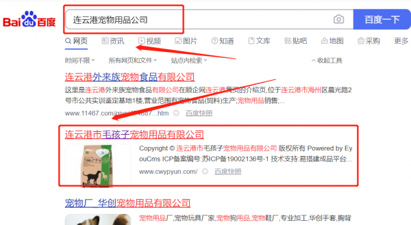 連云港市*孩子寵物用品有限公司網站排名保證在首頁效果