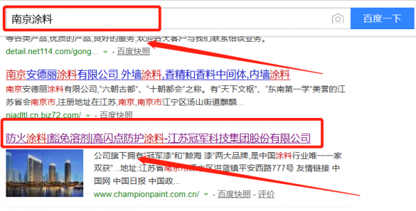 我們公司與江蘇冠軍科技集團(tuán)股份有限公司合作中,對(duì)這個(gè)公司所經(jīng)營(yíng)的涂料這個(gè)行業(yè)提供了百度快照排名,與該公司的合作,更多的客戶讓我們公司為其提供百度快照排名,通過(guò)每一次合作,我們公司不斷完善自己,同時(shí)希望合作伙伴在經(jīng)營(yíng)的路上越來(lái)越好。