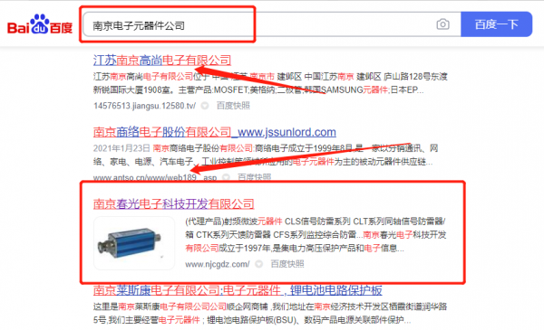 南京春*電子科技開發有限公司百度關鍵詞排名排名案例欣賞