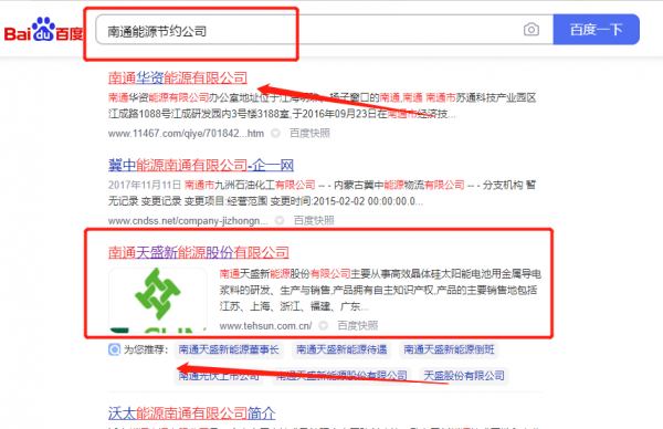 南通*盛新能源股份有限公司百度排名排名案例欣賞