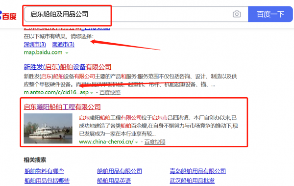 啟東*曦船舶修造有限公司選用我司企業船舶及用品的網站優化產品,其SEO關鍵詞有船舶及用品。通過對搜索引擎目標關鍵詞優化,使目標網站的相關信息顯示在百度首頁,為企業挖掘更多的潛在客戶的同時帶來海量的商機。啟東*曦船舶修造有限公司成立于2016年,是經啟東市市場監督管理局審核的有資質的公司,其統一社會信用代碼:91320681**1MLAQB62。公司地址:江蘇省啟東市呂四港鎮鶴東菜場1號門面。