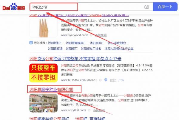 沭陽縣*寧種業有限公司百度排名最快上詞效果展示