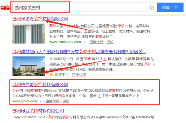 我們公司與蘇州格蘭姆裝飾材料有限公司合作中,對這個公司所經營的家裝主材這個行業提供了關鍵詞搜索排名,與該公司的合作,更多的客戶讓我們公司為其提供關鍵詞搜索排名,通過每一次合作,我們公司不斷完善自己,同時希望合作伙伴在經營的路上越來越好。
