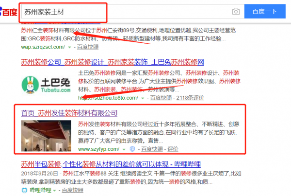 我們公司與蘇州發佳裝飾材料有限公司合作中,對這個公司所經營的家裝主材這個行業提供了關鍵詞搜索排名,與該公司的合作,更多的客戶讓我們公司為其提供關鍵詞搜索排名,通過每一次合作,我們公司不斷完善自己,同時希望合作伙伴在經營的路上越來越好。