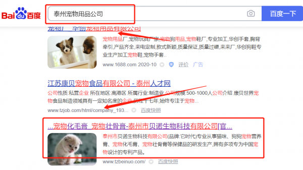 泰州市*諾生物科技有限公司選用我司企業寵物用品的網站優化產品,其SEO關鍵詞有寵物用品。搜索品牌詞,首頁至少霸占5條,通過營銷型網站、媒體文章、口碑等方式,達到全方位霸屏,全面展示企業實力。泰州市*諾生物科技有限公司成立于2016年,是經泰州市市場監督管理局審核的有資質的公司,其統一社會信用代碼:91321283M**MR5HB8P。公司地址:江蘇省泰州市泰興市姚王鎮東林村李空三組。