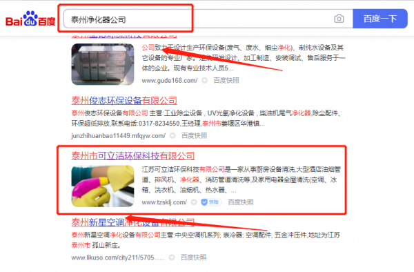 我們公司與江蘇可*潔環保科技有限公司合作中,對這個公司所經營的凈化器這個行業提供了快速排名,與該公司的合作,更多的客戶讓我們公司為其提供SEO推廣,通過每一次合作,我們公司不斷完善自己,同時希望合作伙伴在經營的路上越來越好。