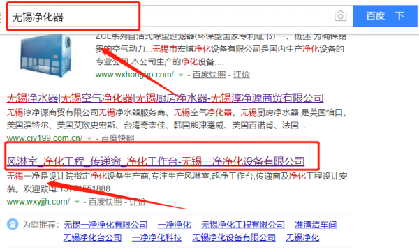 我們公司與無錫一凈凈化設備有限公司合作中,對這個公司所經營的凈化器這個行業提供了百度快照排名,與該公司的合作,更多的客戶讓我們公司為其提供百度快照排名,通過每一次合作,我們公司不斷完善自己,同時希望合作伙伴在經營的路上越來越好。