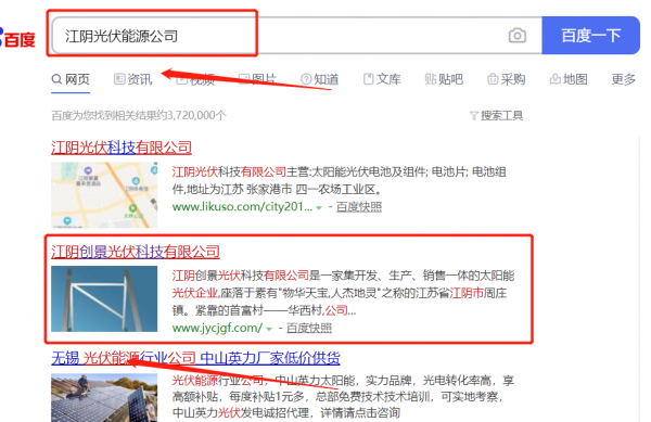 江陰*景光伏科技有限公司選用我司企業(yè)光伏能源行業(yè)的網(wǎng)站優(yōu)化產(chǎn)品,其SEO關(guān)鍵詞有光伏能源。覆蓋國內(nèi)幾大主流搜搜引擎,占領(lǐng)電腦端、手機(jī)端,24小時(shí)快速獲取關(guān)鍵詞排名,搶奪流量。江陰*景光伏科技有限公司成立于2010年,是經(jīng)江陰市市場(chǎng)監(jiān)督管理局審核的有資質(zhì)的公司,其統(tǒng)一社會(huì)信用代碼:91320281**0240121N。公司地址:江蘇省江陰市周莊鎮(zhèn)宏昌路9號(hào)。