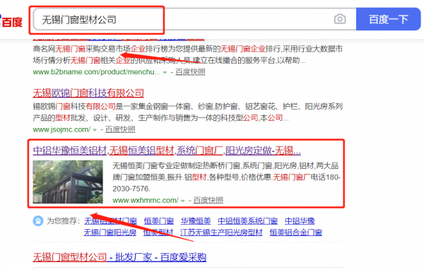 無錫*美門窗公司選用我司企業門窗型材的網站優化產品,其SEO關鍵詞有門窗型材。搶占百度、360搜索、搜狗等搜索引擎首頁自然排名(PC端 + 手機端),高客流量導入,SEO推廣效果更突出。無錫*美門窗公司成立于2008年,是經無錫市市場監督管理局審核的有資質的公司,其統一社會信用代碼:9132020**78343285T。公司地址:江蘇省無錫市人民中路88號825室。