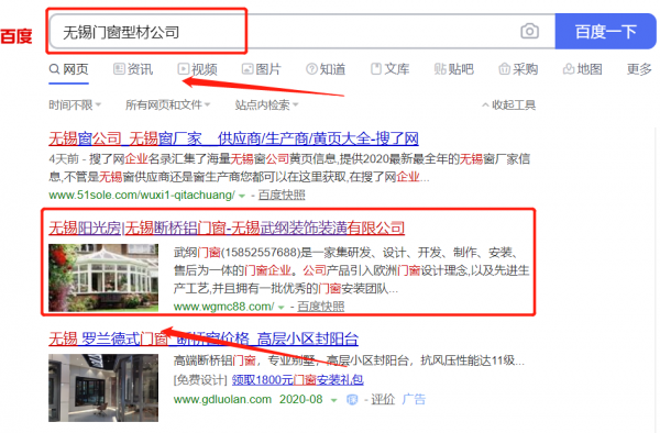 無錫市*綱裝飾裝潢有限公司選用我司企業門窗型材的網站優化產品,其SEO關鍵詞有門窗型材。搶占百度、360搜索、搜狗等搜索引擎首頁自然排名(PC端 + 手機端),高客流量導入,SEO推廣效果更突出。無錫市*綱裝飾裝潢有限公司成立于2010年,是經無錫市市場監督管理局審核的有資質的公司,其統一社會信用代碼:91320203**5837074R。公司地址:江蘇省無錫市南長區金城大橋東堍沁園新村531號(1-23)。