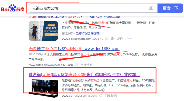 我們公司與唯客*(無錫)展示系統有限公司合作中,對這個公司所經營的亞克力這個行業提供了快速排名,與該公司的合作,更多的客戶讓我們公司為其提供關鍵詞搜索排名,通過每一次合作,我們公司不斷完善自己,同時希望合作伙伴在經營的路上越來越好。