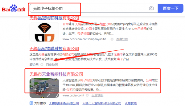 我們公司與無錫市*業(yè)智能科技有限公司合作中,對這個公司所經(jīng)營的電子標簽這個行業(yè)提供了整站優(yōu)化,與該公司的合作,更多的客戶讓我們公司為其提供百度快照排名,通過每一次合作,我們公司不斷完善自己,同時希望合作伙伴在經(jīng)營的路上越來越好。