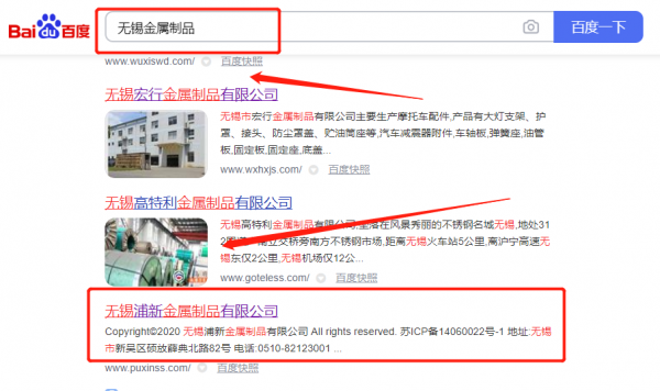 無錫浦*(中新)金屬制品有限公司關鍵詞排名最快上詞效果展示