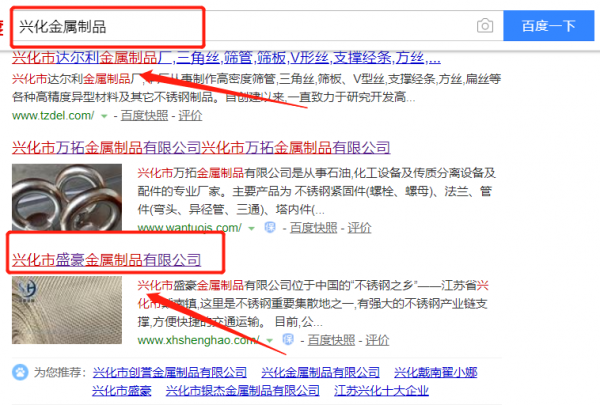 興化市盛豪金屬制品有限公司選用我司企業金屬制品行業的網站優化產品,其SEO關鍵詞有金屬制品。采用全球領先的關鍵詞三維云計算系統,智能關鍵詞報價查詢,徹底杜絕高價、朦朧價。自助提交優化任務,自由設定指定關鍵詞,指定排名位置,避免傳統銷售誘導。興化市盛豪金屬制品有限公司成立于2015年,是經興化市市場監督管理局審核的有資質的公司,其統一社會信用代碼:91321281MA1MBHD676。公司地址:江蘇省興化市戴南鎮趙家村。